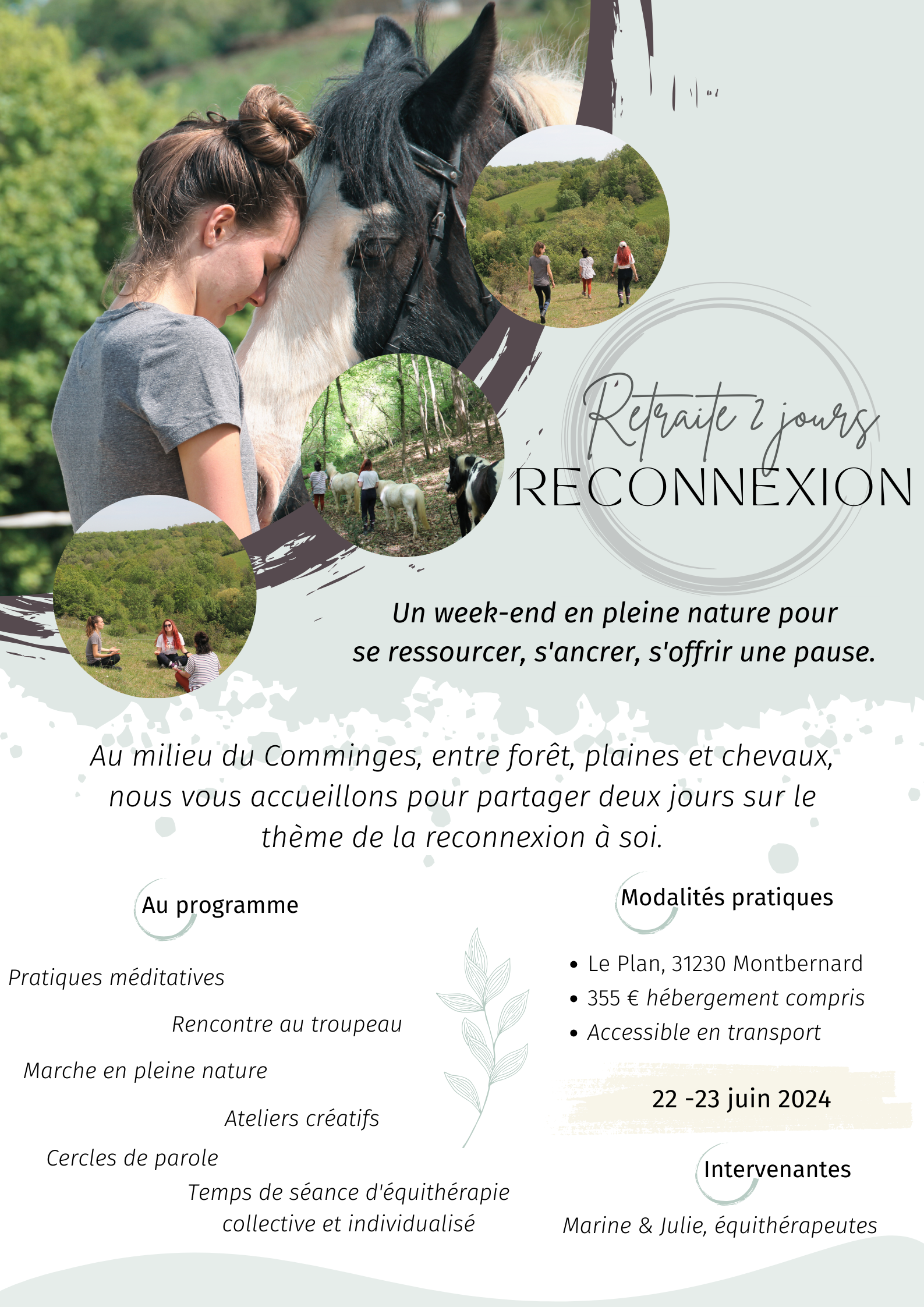 Dans une idée d’immersion pour se retrouver, nous proposons des espaces avec activités favorisant la “déconnexion”. Un temps de pause encradré par des professionnels de la médiation équines ouvrant le champ vers des pratiques pluridisciplinaires telles que :